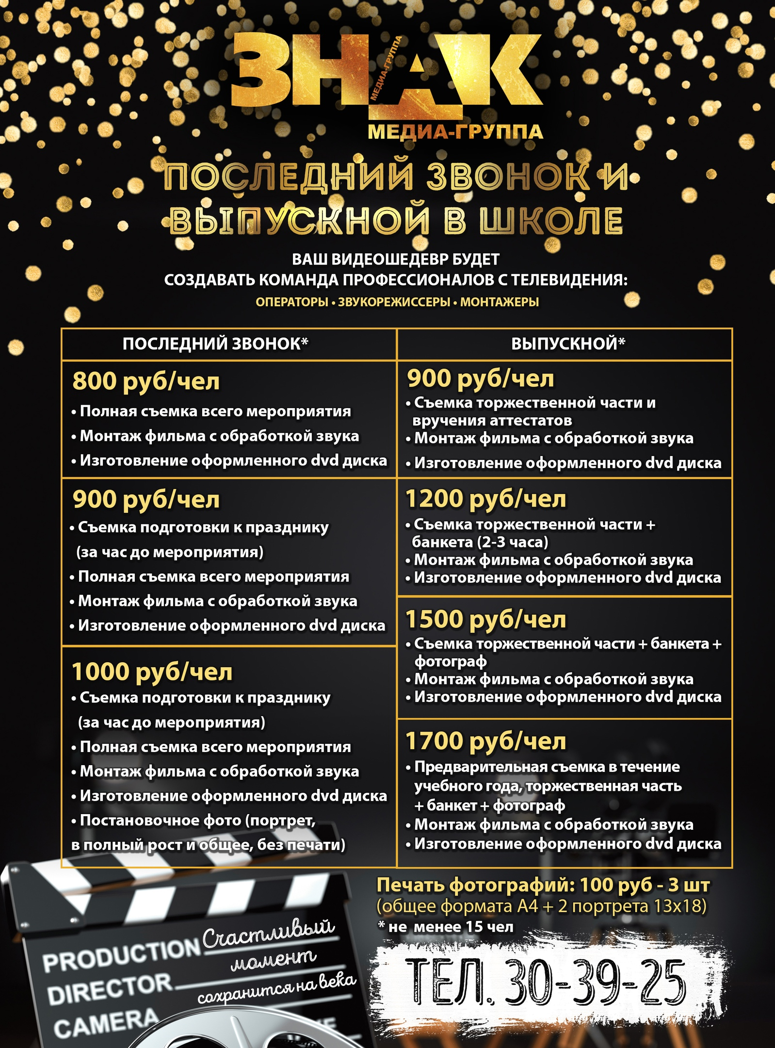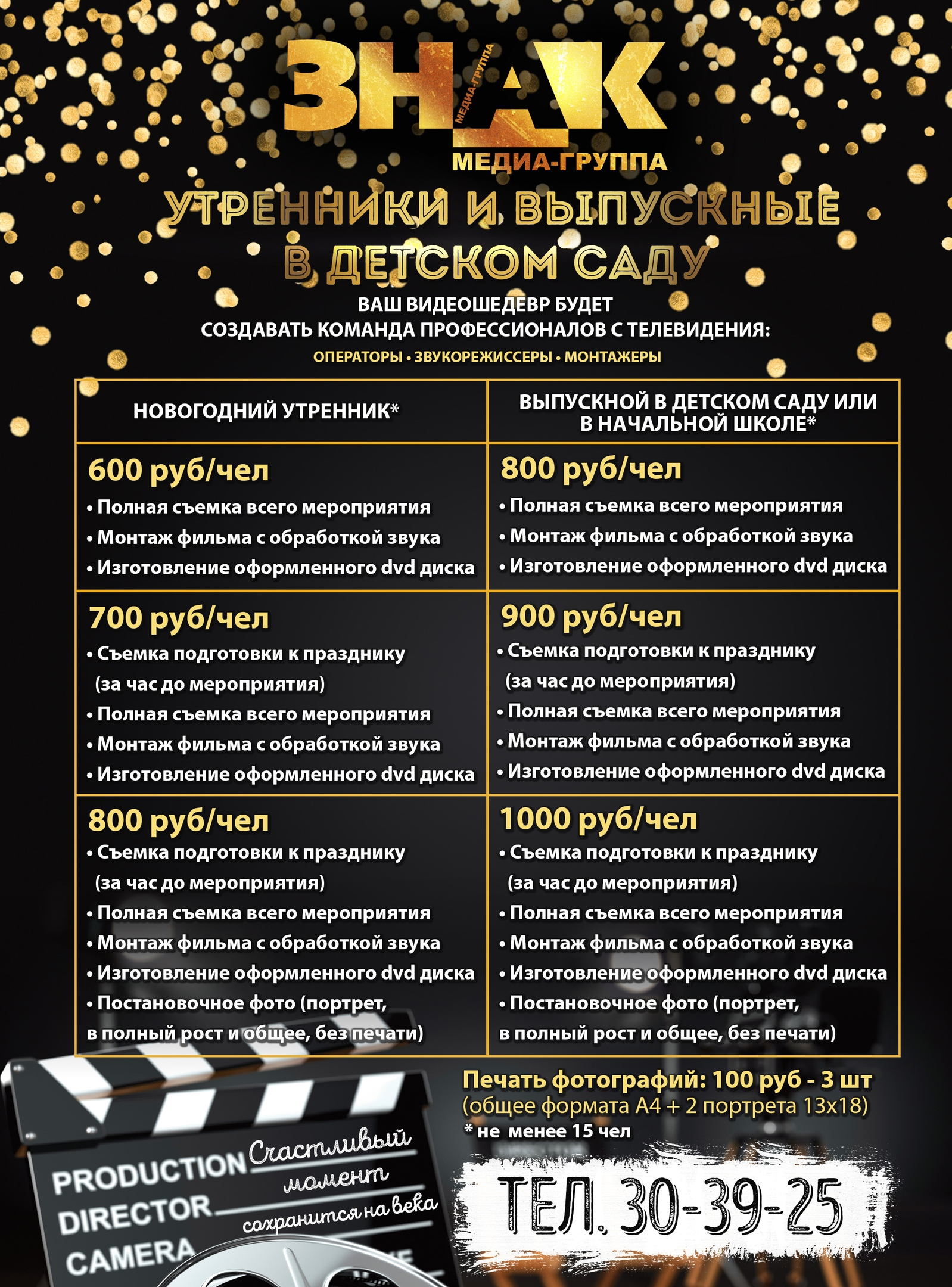 Медиагруппа «Знак» предлагает широкий спектр услуг в области видеосъемки, монтажа и звукозаписи.