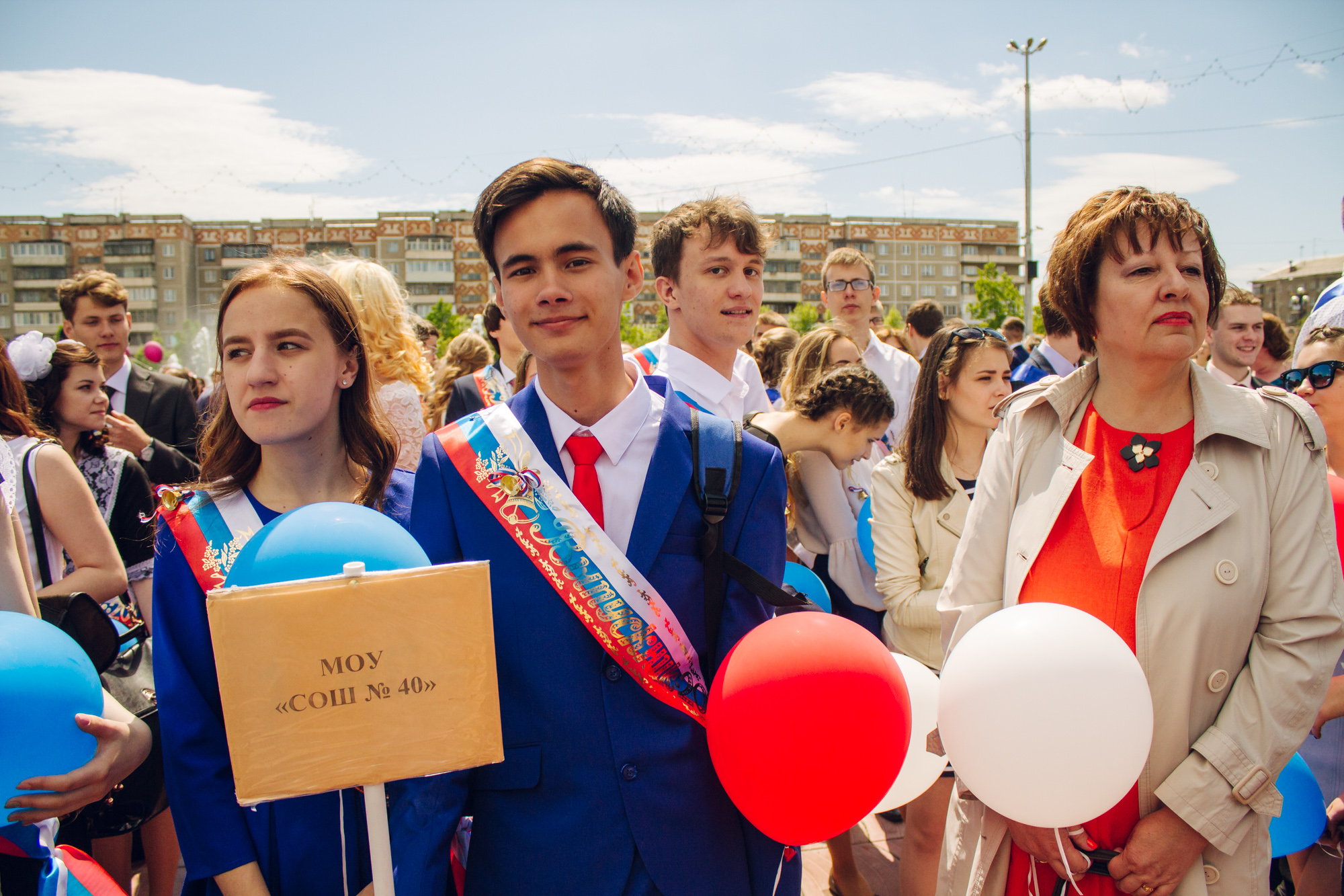 После школьники дали «клятву верности городу», потрогали «счастья пятак» и загадали желание, выпустив в небо воздушные шары. Их было около двух тысяч — одиннадцатые классы окончили 1 863 ребёнка.