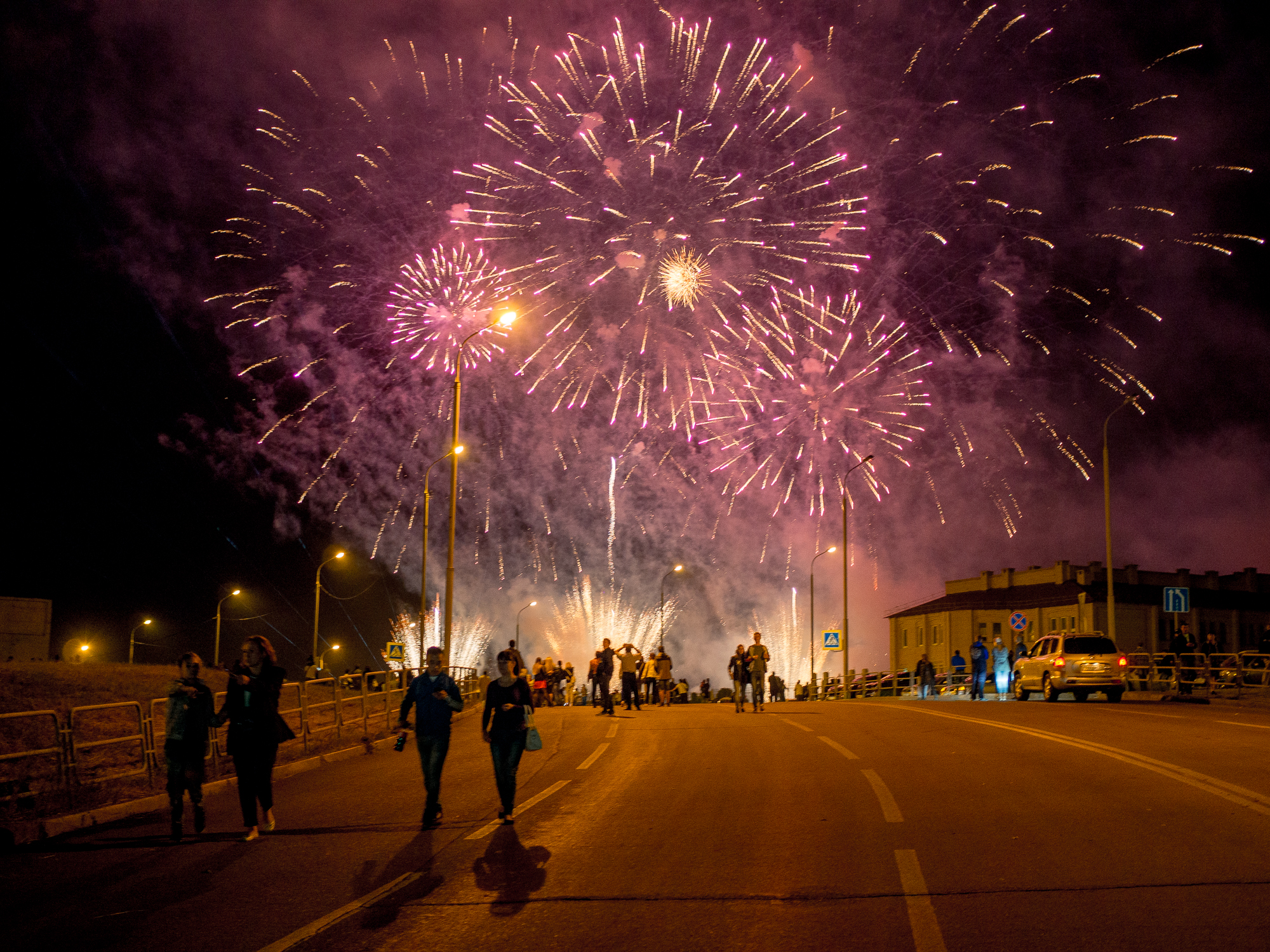 Чиновники не солгали — фейерверки взмывали в небо более двадцати минут. На них смотрели, как на «Стрижей». А может и с большим трепетом. И как после выступления авиагруппы, после фейерверков люди устремились домой.