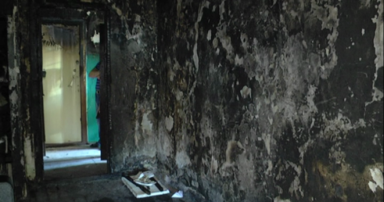 Около пяти утра хозяйку квартиры № 89 дома № 179 по пр. Карла Маркса разбудил звук бьющегося стекла. Проснувшись, она обнаружила, что в одной из комнат начался пожар. Окно было разбито. Первыми загорелись шторы, затем огонь перекинулся на стены и мебель.