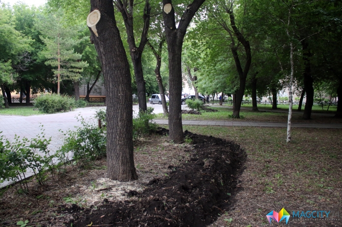 До 10 июля проходит ремонт сквера 50-летия ММК. Сейчас там косят траву, проводят обрезку поросли и деревьев, белят фонтаны, высаживают цветы. В сквере будут работать три маленьких фонтана и один большой возле стелы. В сквере впервые уложена тротуарная плитка, восстановлено освещение: установлены новые лампы, плафоны и торшеры.