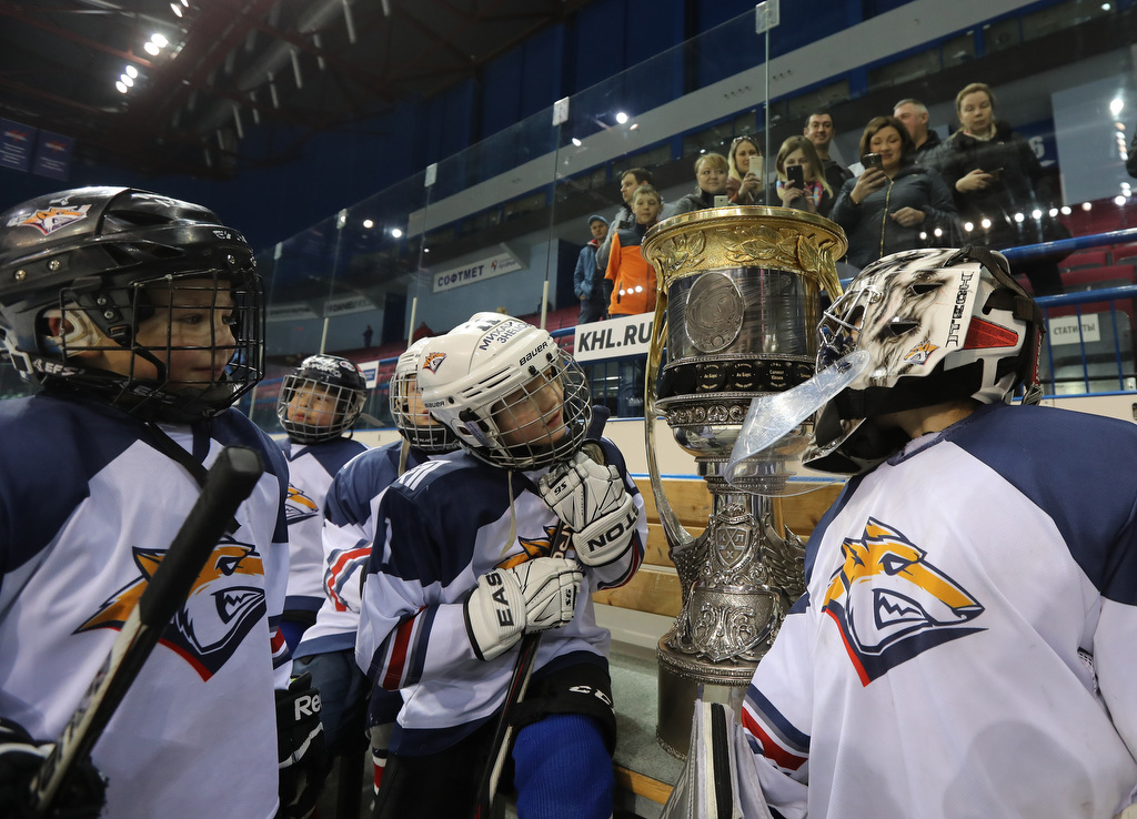 Первыми победный кубок увидели юные хоккеисты «Металлурга». Прямо во время тренировки на лед к воспитанникам СДЮСШОР спустили легендарную чащу. Каждый из них смог посмотреть и даже прикоснуться к главному трофею КХЛ.