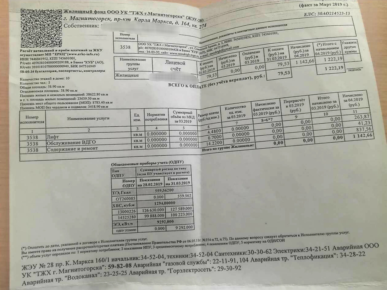 — С начала года мы еще не получали квитанций от ЖРЭУ, если и приходили, то только за свет и газ, и те по нулям, а в этот раз пришла уже с суммой. Написано — за март, мы очень удивились, — сказала Анна Стельмахович, жительница шестого подъезда дома 164 по пр. К. Маркса. — Почему мы должны платить за тот же лифт, если он не работал?