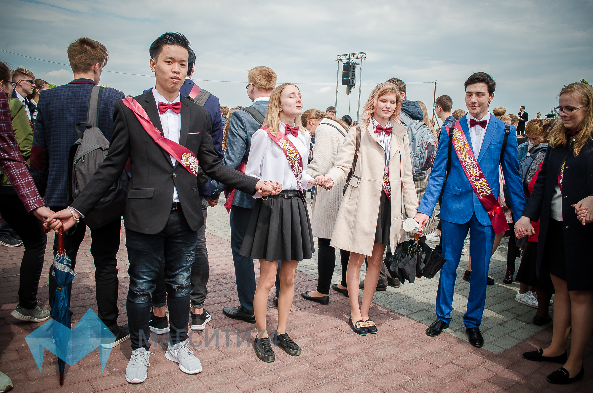 Торжественный спуск к месту проведения праздника — с подножья монумента «Тыл-Фронту». В этом году парад впервые проходит в обновленном парке у Вечного огня. По традиции напутствие от главы города, а следом звучит тот самый, последний звонок.