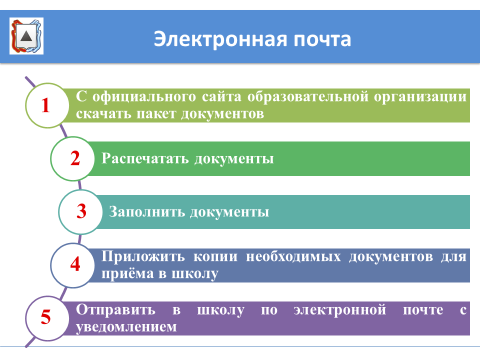 3. Отправить письмо на электронную почту учебного заведения. Для этого требуется выполнить шаги, указанные на схеме ниже.