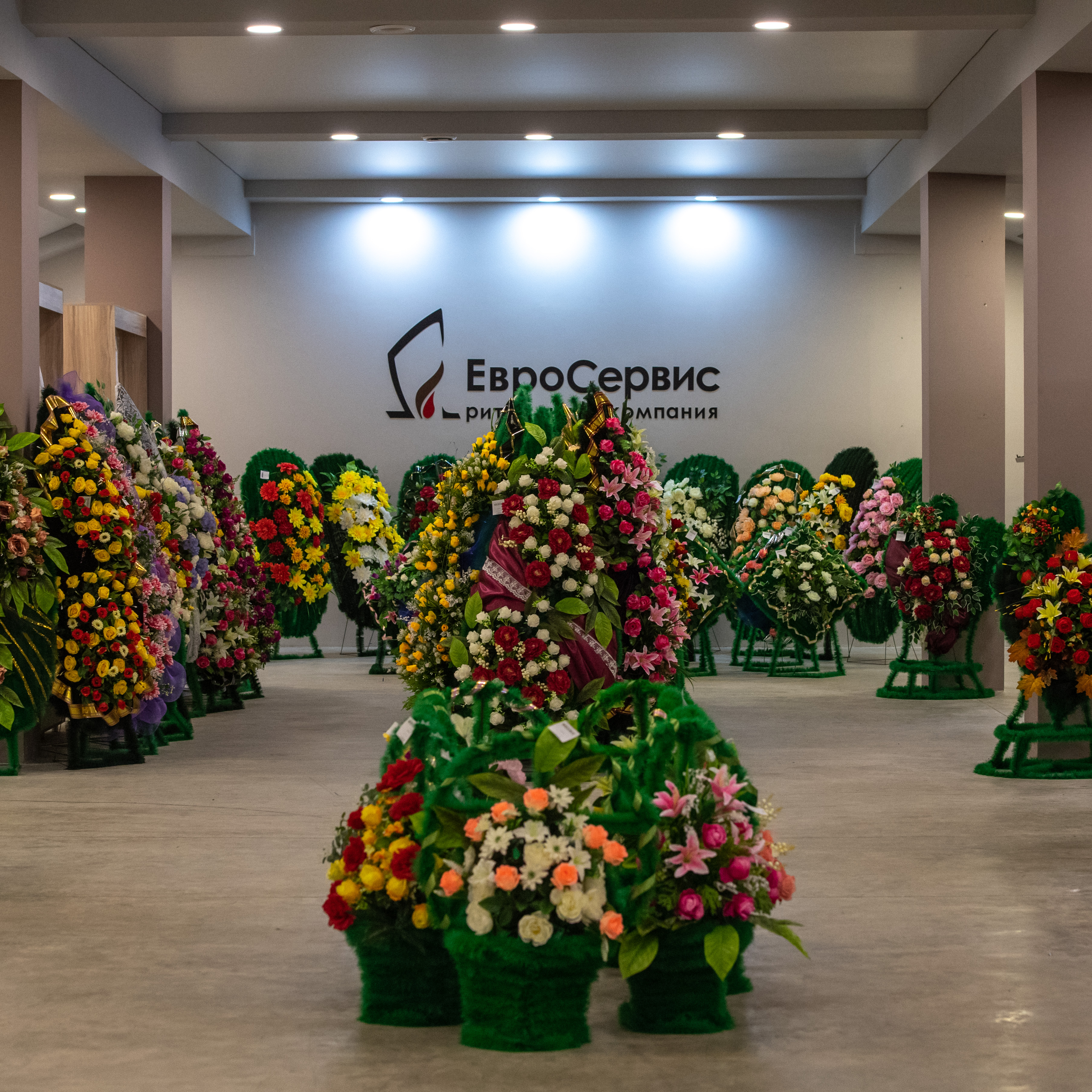 Сегодня ЕвроСервис предлагает своим клиентам венки и цветочные композиции не только из искусственных растений, но и из живых. Хвойные ветки, цветы и иные элементы декора в руках мастеров обретают новый символ памяти.