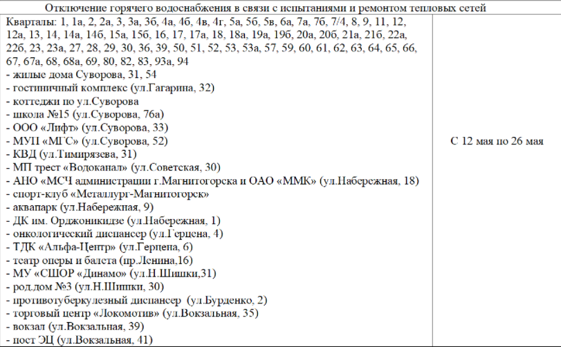 Напомним, первые работы начнутся уже завтра. Без воды до 26 мая останутся часть кварталов с 1 по 94, сама Теплофикация, вокзал, два диспансера, один из роддомов и два образовательных учреждения.