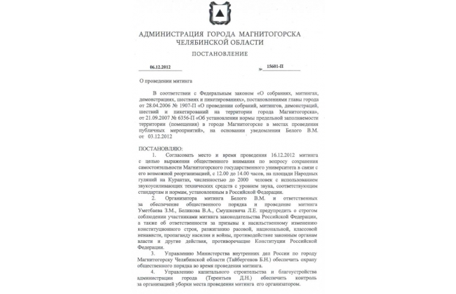 В ПОДДЕРЖКУ СОХРАНЕНИЯ МаГУ, санкционированный Главой города, состоится 16 декабря в 12 часов на площади Народных гуляний у Курантов.